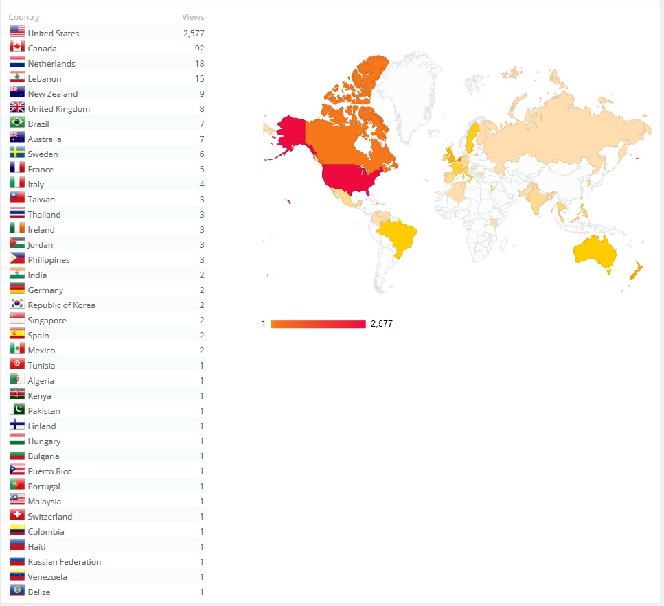 Some of this data is no surprise. The majority of my visitors come from the U.S. Then we have Canada coming in second. Again, no surprise there. But number three is…the Netherlands? And number four is Lebanon?