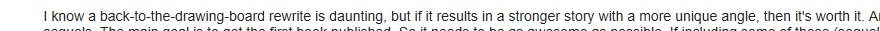 Only I ran into a problem. I kept seizing up mentally. I knew what I had to do, but actually going in and making the changes was way too difficult for me. And the more I thought about the rest of the book, the more I froze mentally. I was really starting to worry that I wouldn’t be able to get through the rewrite at all.